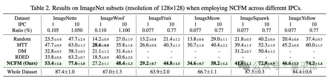 在ImageNet的各个子集上,NCFM也展现了卓越的性能。