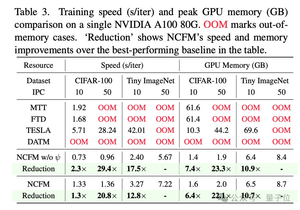 在性能提升的同时,NCFM还实现了大量的速度提升和资源节约。