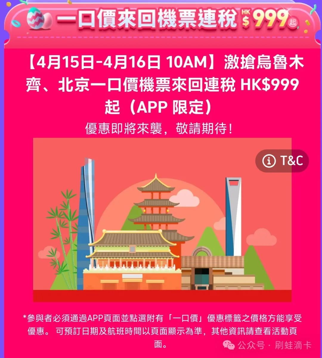 乌鲁木齐和北京往返含税999(香港机票税费是个痛点,尤其是港府要增加离境税),深圳的朋友也可以考虑。