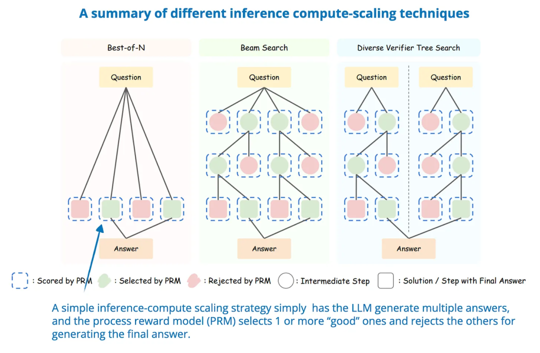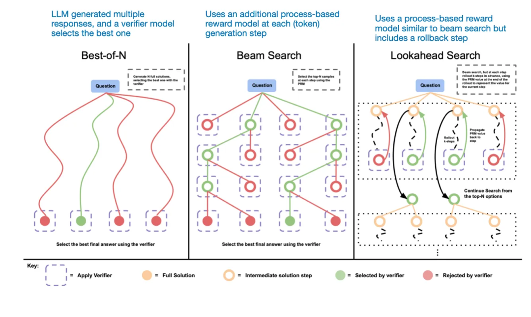 除了上述提到的增加计算资源、提示词工程方法外,还有另一种方法即涉及到投票和搜索策略,例如多数投票或波束搜索,这些策略通过选择最佳输出来优化响应。