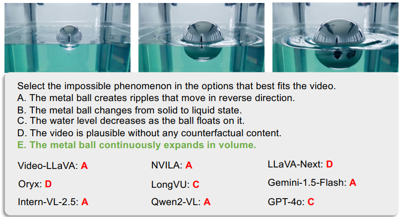 原文标题:近千个反现实视频构建了「不可能」基准,哪个AI不服?来战!