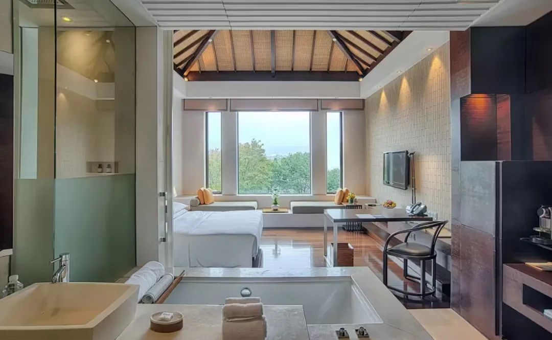 宁波柏悦是东钱湖周边的老网红了,周末价格1700多,套餐现在2晚才1800多,这种价格,每次看到一定要囤。