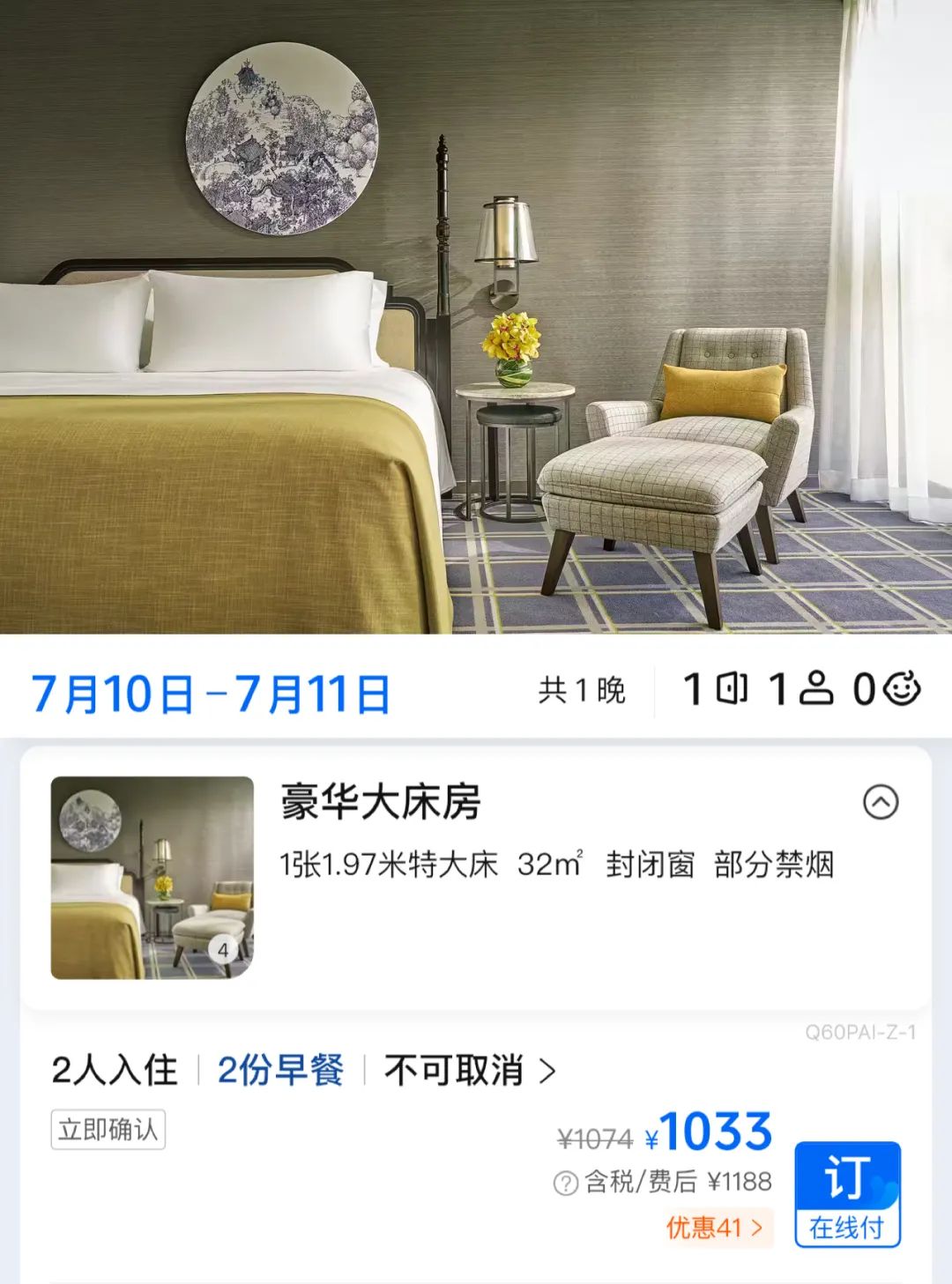 周中去住是最划算的,无早日历房要1500+,套餐含早只要944/晚。周六补200也是好价,能省600多,刚好是美团把这200差价给你补上了。
