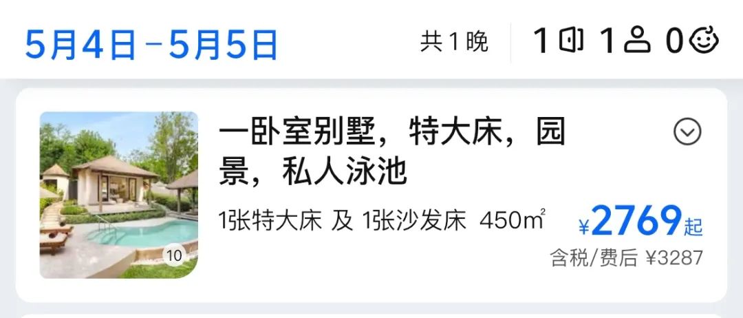 一卧室别墅 园景带私人泳池 3309元/2晚