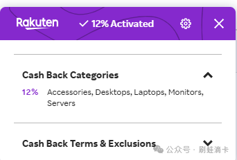 3. 激活返现:插件安装成功后访问 Dell 官网(其他购物网站同理)后会再页面弹出紫色的插件图标,点击插件图标开启 “Activate Cash Back”,如果激活成功再次点击会显示activated。