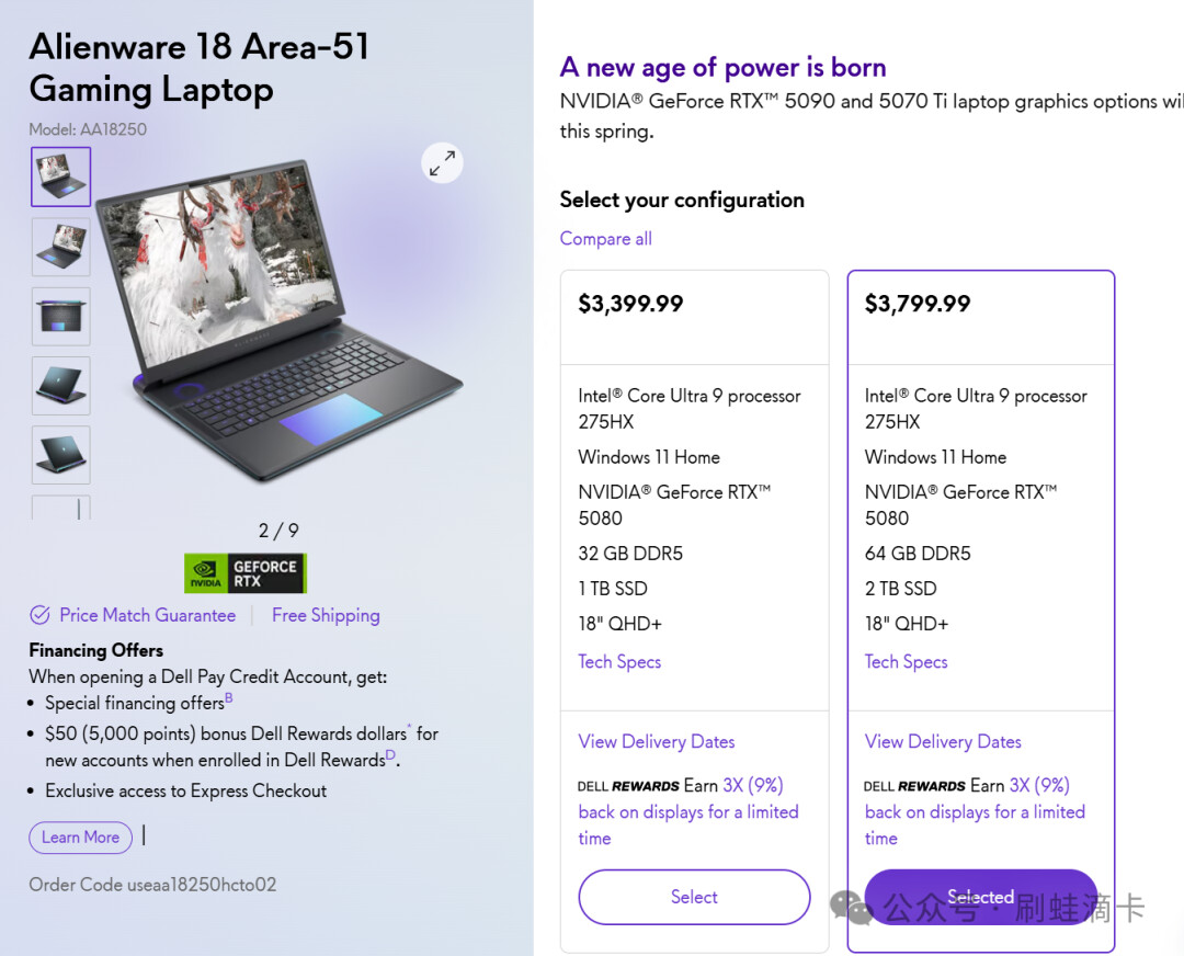 4. **拆分付款:** DELL网站支持拆分多张卡支付,可充分利用不同信用卡的优惠。