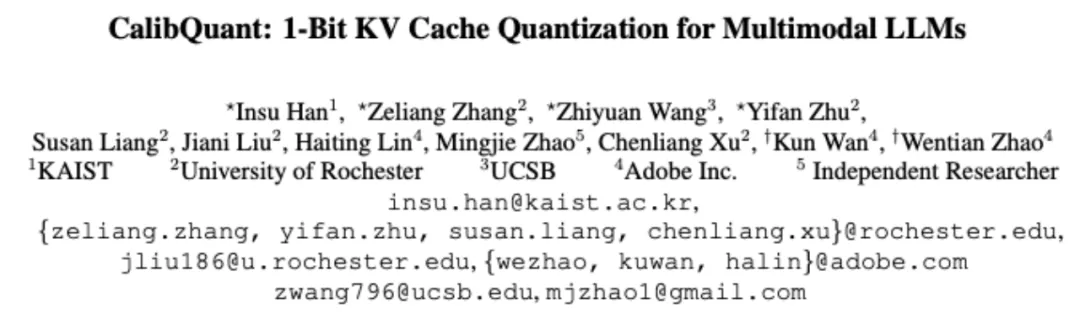 论文标题:CalibQuant:1-Bit KV Cache Quantization for Multimodal LLMs
