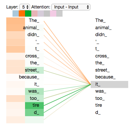 你可以查看 Tensor2Tensor 的 notebook 示例,它提供了一个可以加载 Transformer 模型并进行交互式可视化的工具,非常值得一试。