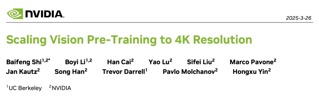 论文标题:Scaling Vision Pre-Training to 4K Resolution
