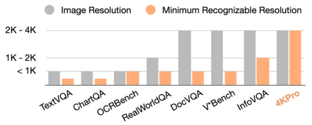 研究者们发现,当前绝大多数视觉问答评测集,即使图像是 4K 分辨率,实际任务却不需要这么高的分辨率来解题。他们引入了一个新概念:MRR(Minimum Recognizable Resolution):完成某个任务所需的最小有效图像分辨率。