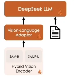 Hybrid Vision Encoder:混合视觉编码器,采用 SigLIP-L 作为视觉编码器,结合 SAM-B 和 SigLIP-L 编码器,能够高效处理高分辨率图像(1024×1024),同时保留语义和细节信息。高分辨率特征图经过插值和卷积处理后,与低分辨率特征图连接,生成具有2048个维度的视觉 token。