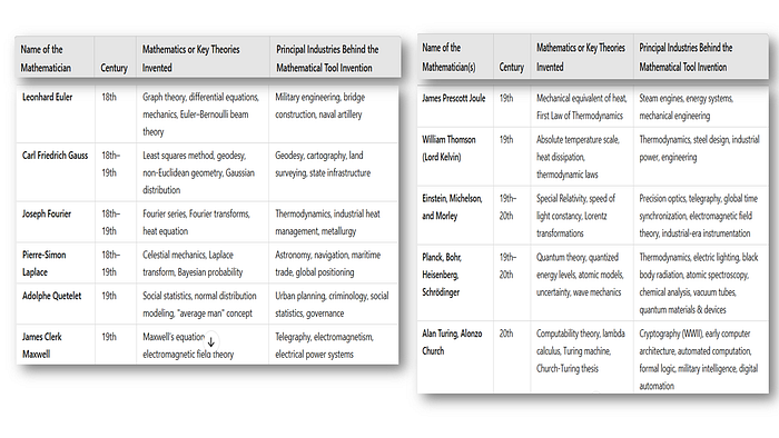 表 1:历史上最伟大的数学家不仅仅是理论家,他们更是“工具制造者”。每一个人都发明了那个时代迫切需要的数学工具。数据来源:数学史