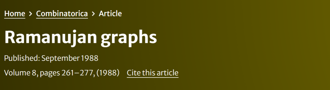 因此,他们将这些最优扩展图称为「拉马努金图」(Ramanujan graphs)。(同年,Grigorii Margulis 使用了不同但同样高超的方法构建了其他示例。)