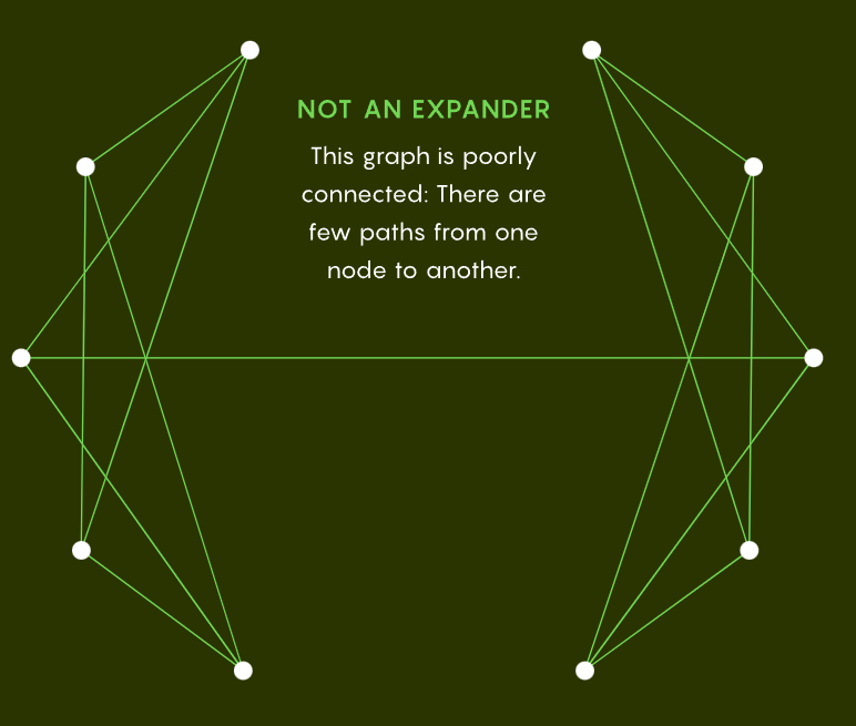 下图为非扩展器示例,该图连通性较差,从一个节点到另一个节点的路径很少。