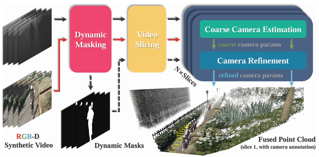 4D 动态重建:通过自动标注流水线,构建合成 4D 数据集,无需真实世界数据即可实现零样本迁移,精准捕捉并重建时空环境的动态变化。例如,输入一段街景视频,系统即可重建包含时间维度的三维场景模型,精确呈现行人行走、车辆运动等动态过程,建模精度可达毫米级。