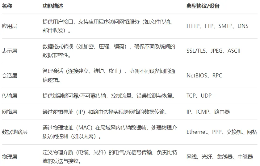 OSI七层网络模型是一种理论框架,核心是分层解耦,将网络自底向上分为物理层、数据链路层、网络层、传输层、会话层、表示层和应用层。