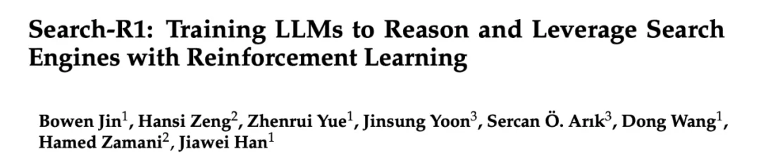 论文标题:Search-R1: Training LLMs to Reason and Leverage Search Engines with Reinforcement Learning