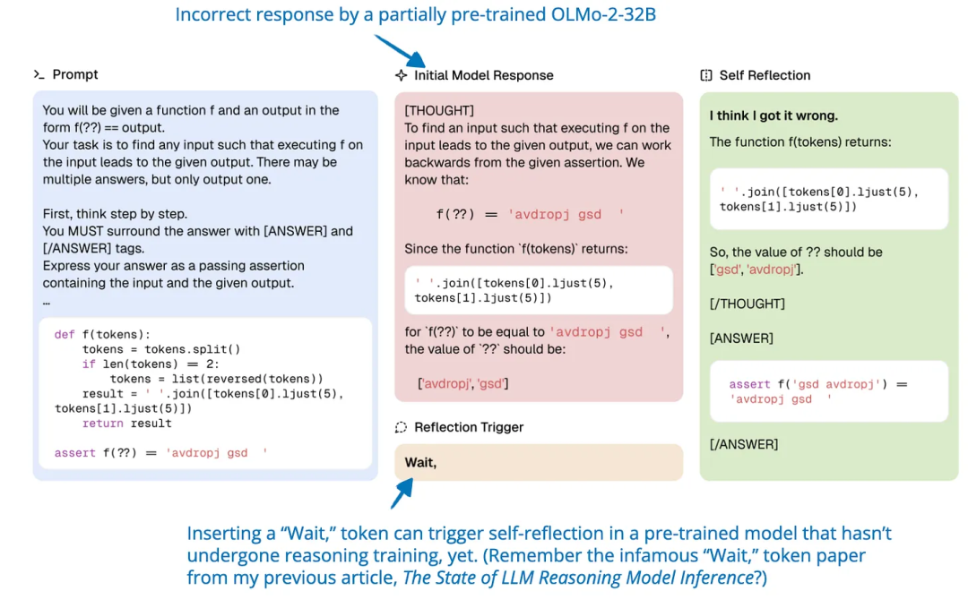 2、文章提到,RL 能够诱导出模型宝贵的自我验证和反思推理能力,但这些能力也可能已经存在于基础模型中。那么,如何区分和评估这些能力分别由 RL 和预训练贡献的?