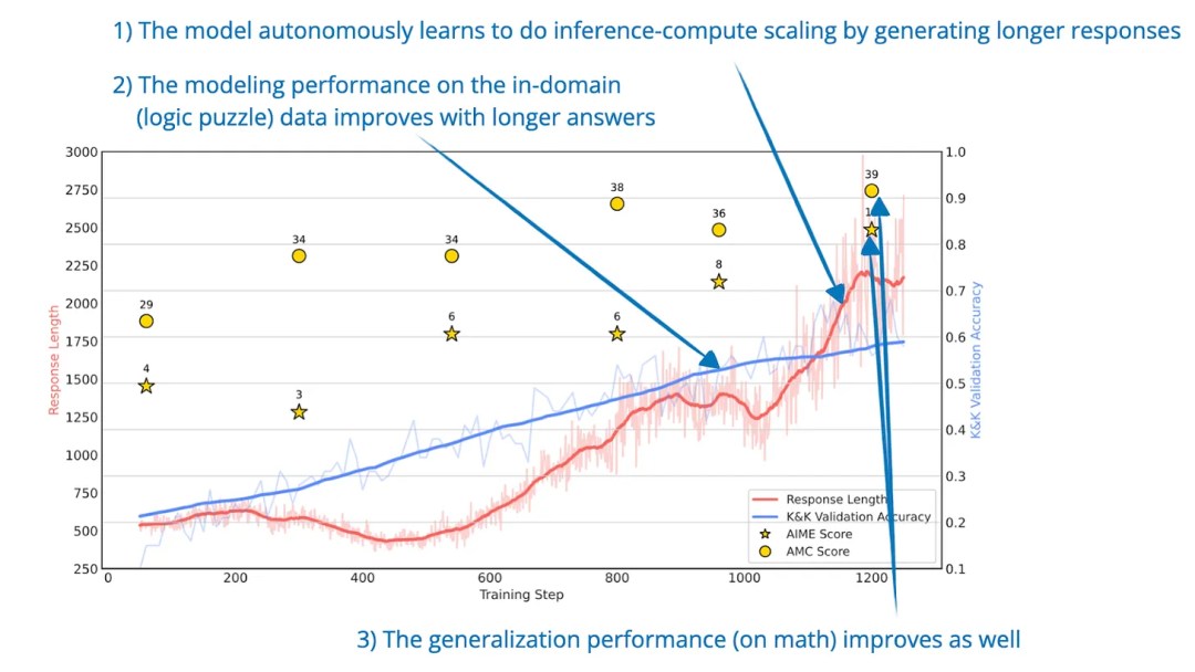 这一点特别有趣,因为它表明基于逻辑的 RL 训练可以教会模型推理的方式,并将其应用到原始领域之外。