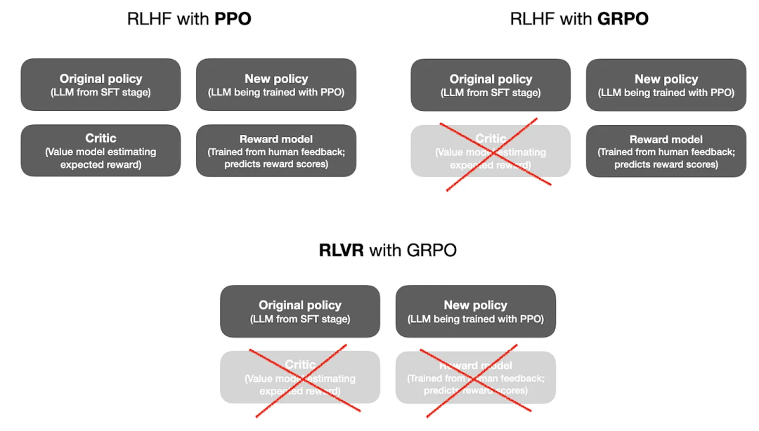 用于构建和改进推理模型的强化学习训练方法,或多或少与用于开发和对齐传统 LLM 的 RLHF 方法论相关。因此,在讨论基于强化学习训练的特定推理修改(modification)之前,我想先简单回顾一下 RLHF 的工作原理。