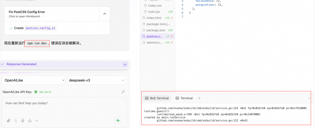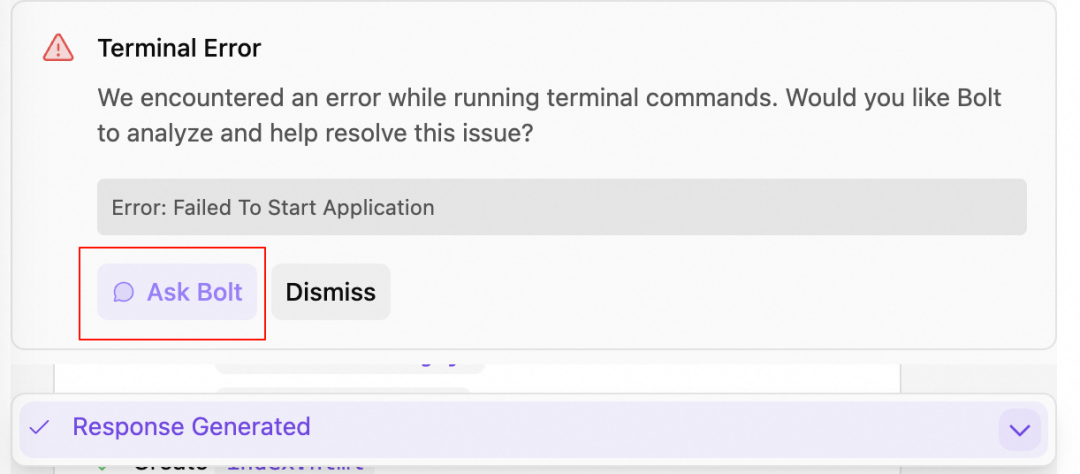 2. 如果出现 Terminal Error 错误可以单击 Ask Bolt,让 AI 自动处理问题。