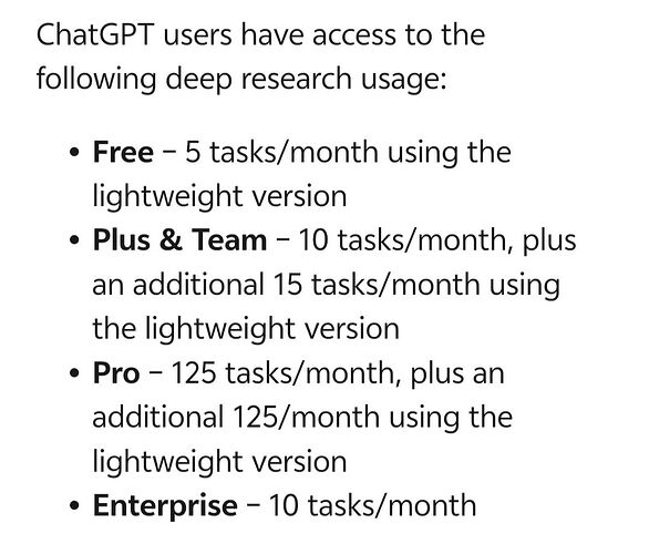 OpenAI 在帖子中表示:“轻量版Deep Research响应时间通常会更短,同时保持用户期望的深度和质量。一旦达到Deep Research完整版本的使用限制,查询就会自动切换到轻量级版本。”