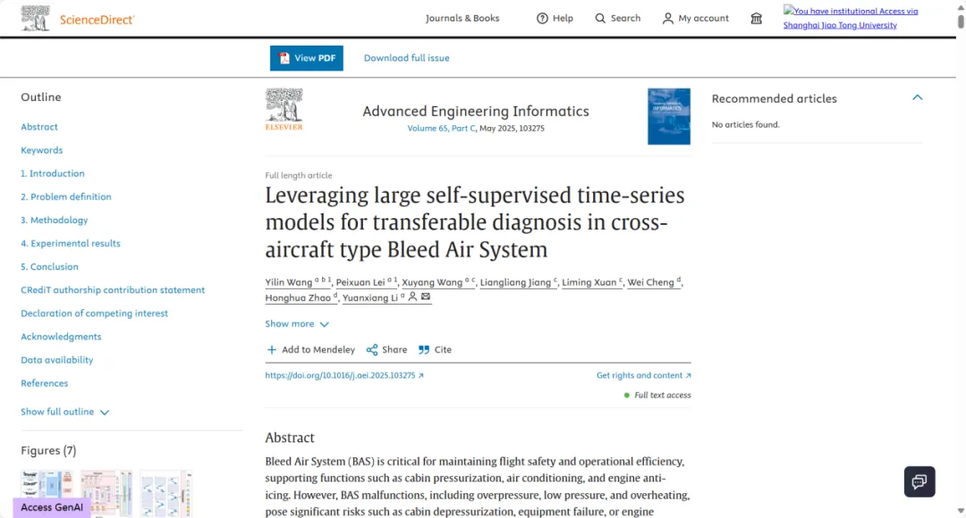 近日,上海交通大学航空航天学院李元祥教授团队,联合上海飞机设计研究院和东方航空技术有限公司 MCC,在国产大飞机核心系统的智能诊断方向取得重要突破。研究团队围绕引气系统的跨机型诊断难题,首次构建基于时序大模型的统一诊断框架,实现了来自空客 A320、A330 等成熟机型的运行知识向国产 C919 的有效迁移,为新机型在数据稀缺条件下的早期健康管理提供了智能化解决方案。
