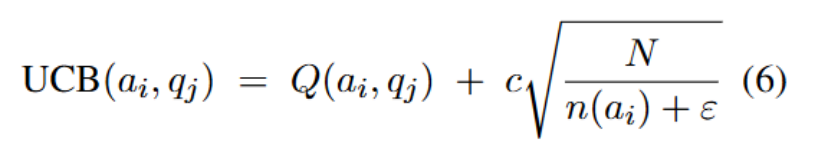 被选中的次数,ε≪1:防止除以 0 的微小常数,c:超参数,控制探索(少被用过的智能体)与利用(高评分智能体)之间的平衡。