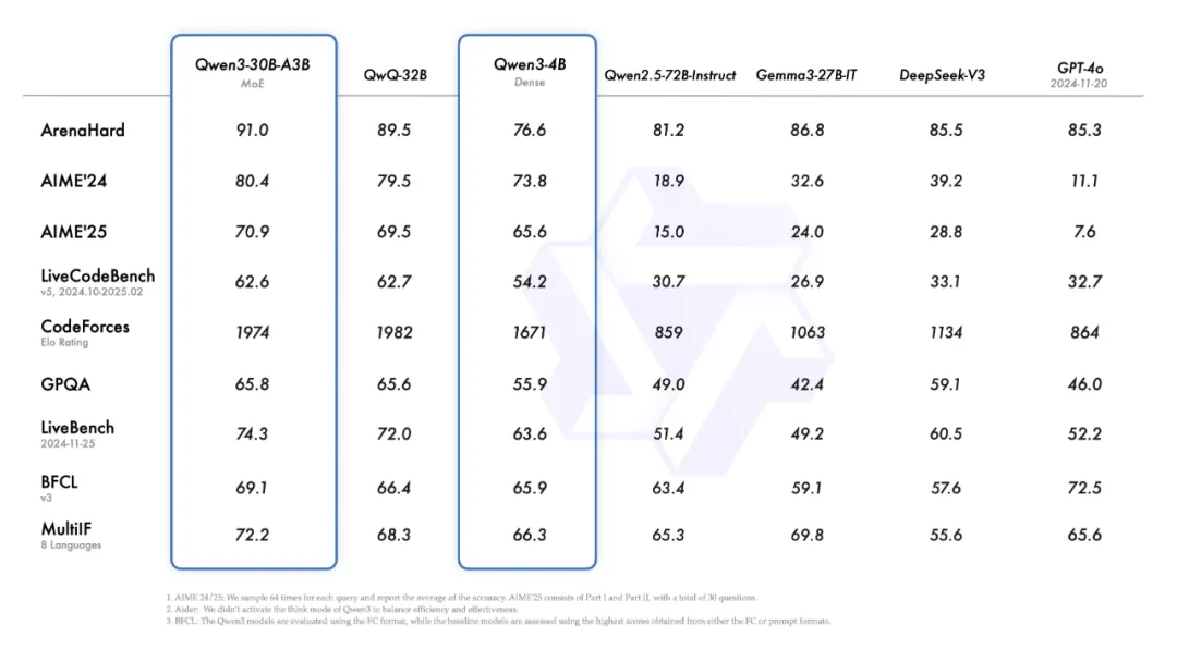 阿里发布Qwen3,采用混合推理模式,成本仅DeepSeek R1三分之一,性能超越多个顶尖模型,并开源商用。