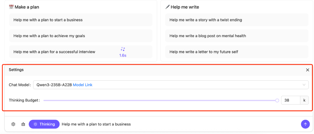 思考模式:在此模式下,模型会逐步推理,经过一系列思考后再给出最终答案。适用于需要深入思考的复杂问题。
