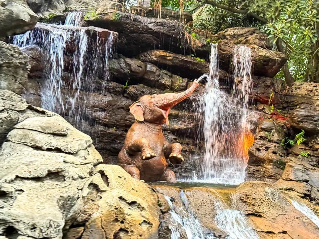 河流探险沿途会经过多个惊险场景,如遇到大象喷水、河马攻击、原始人部落等,逼真的场景让我沉浸式体验了一场真实的丛林探险。