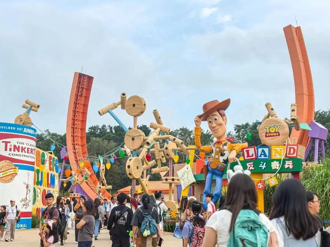 《反斗奇兵大本营》园区是以《玩具总动员》为主题,整体风格像是一个被缩小的玩具营地,到处都是巨大的玩具模型、卡通形象和充满童趣的装饰。