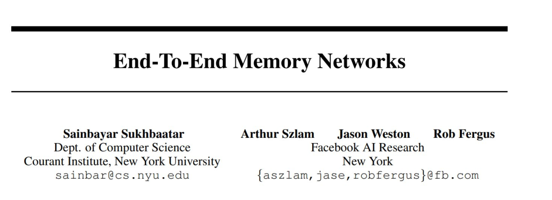 同时,也有一些论文的光芒被它掩盖,比如发布于 2015 年的「End-To-End Memory Networks」。