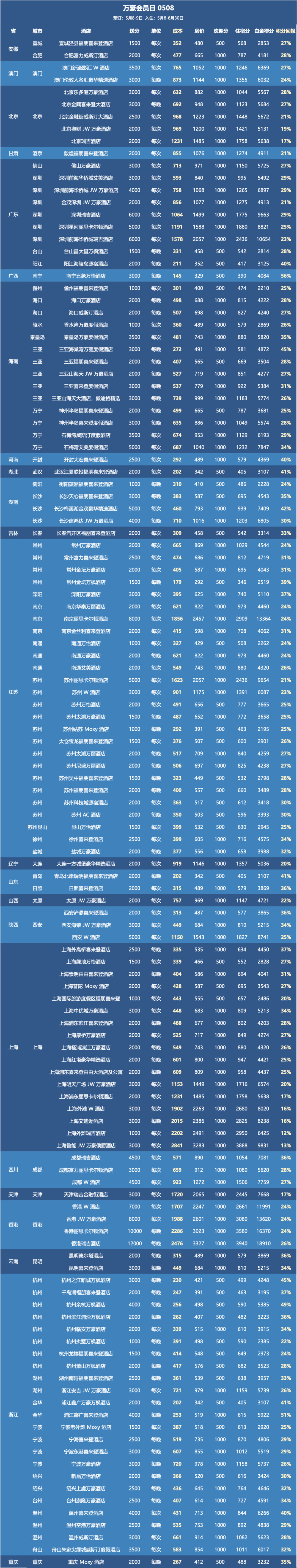 这次是全房型的正经闪促,但有一说一,这次阵型比较朴素,共125家酒店参与闪促,最高送12000分/晚。