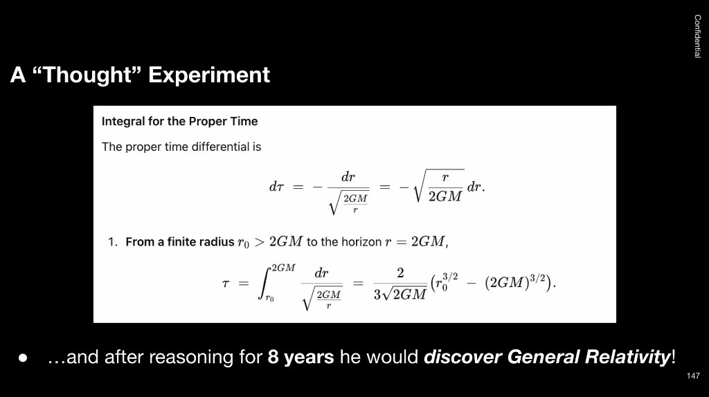 看起来「爱因斯坦 v1907-super-hacks」的思考逐渐接近黑洞的概念了…… 不过我也不知道为什么他会把自己代入到这些场景里。但答案是正确的。