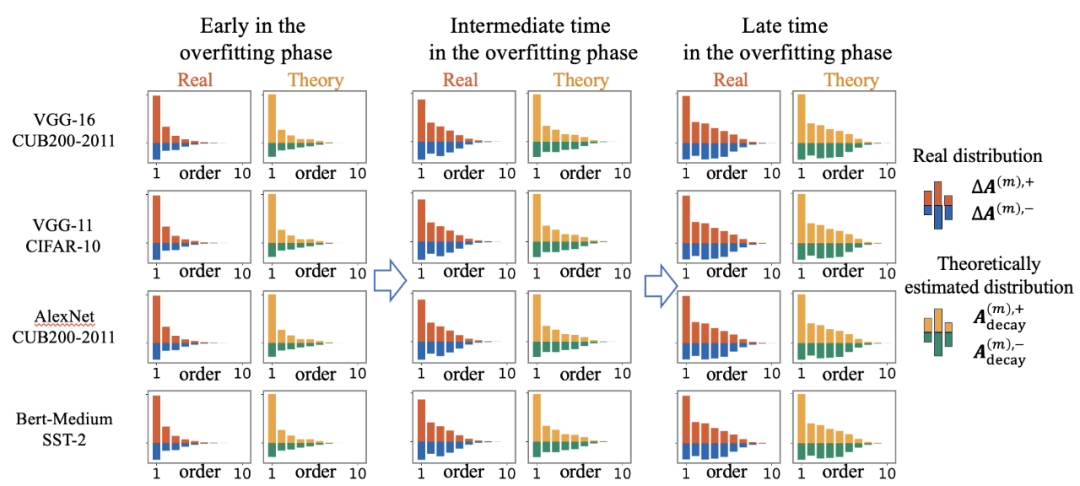 图 7. 使用分解算法从真实神经网络训练过程中的不同时间点提取可泛化交互的衰减型分布
