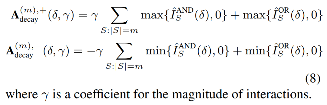 交互概念的分布:对于所有 m 阶交互,我们通过计算所有 m 阶正交互的强度之和 和所有 m 阶负交互的强度之和来表示交互概念在不同阶数(复杂度)上的分布。具体计算公式如下