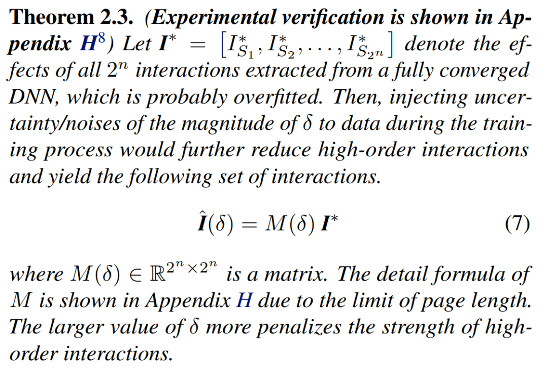 第二,对于衰减形分布的建模,我们团队在之前的工作中理论并实验验证了神经网络在训练过程的第二阶段的交互变化动态过程。定理 2.3 表示了神经网络参数和数据集中的不稳定噪声可以去除神经网络的相互抵消的中高阶交互,即避免过拟合。因此,我们可以通过设置