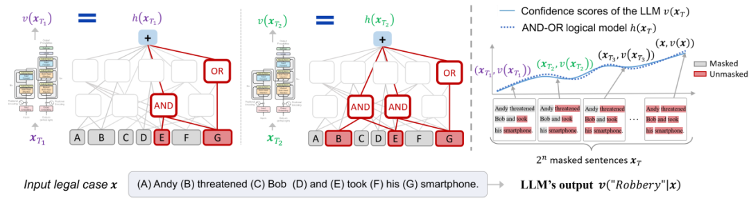 图 1. 与或交互的无限拟合性。给定一个神经网络,总能构造出一种稀疏的「与或交互逻辑模型」,仅使用少量的显著「与或交互」来精确匹配神经网络在所有 2^n 种遮挡样本上的输出。