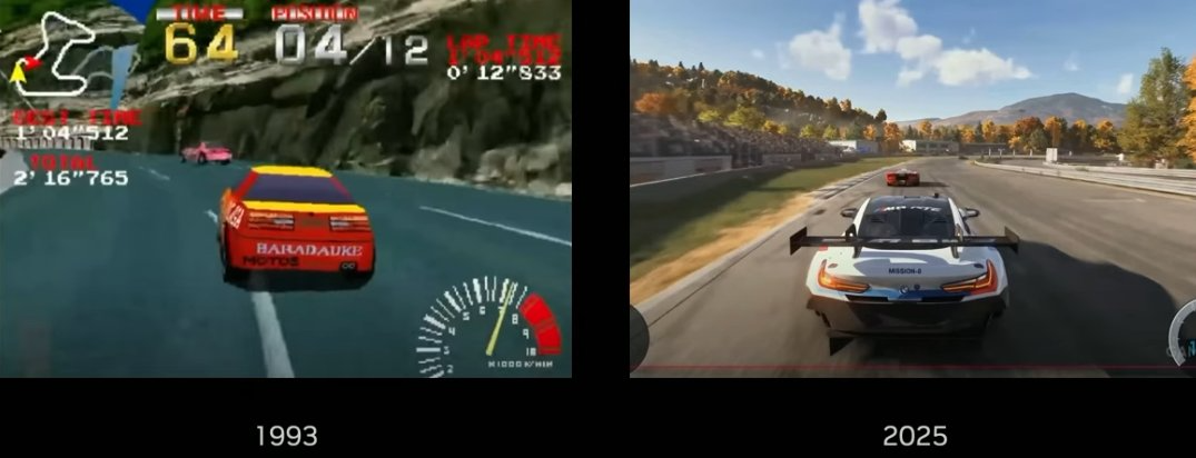 要知道,从左边的视觉效果到右边的视觉效果,可是足足花了 30 多年时间。但视频生成模型只用了一年时间从实现从左边到右边的跨越。