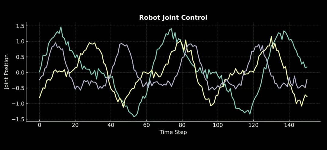 收集到的数据如下图所示。这是机器人关节控制信号,是随时间变化的连续值。你在维基百科、YouTube、Reddit 或任何地方都找不到这种数据,所以你必须自己收集。