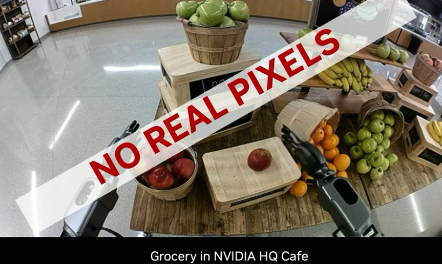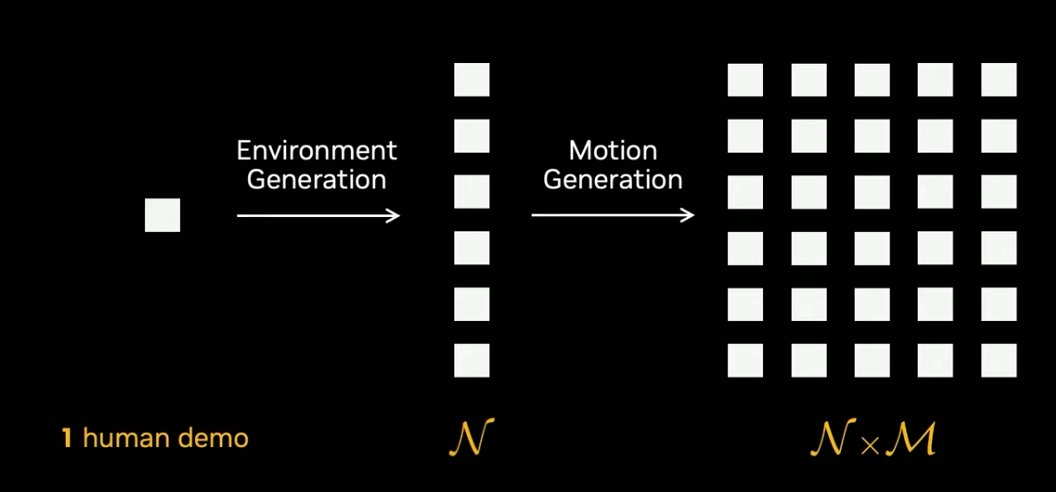 而在模拟中,我们可以通过各种技术修改场景,甚至还可以修改运动,比如可以通过 GR00T Mimic 等技术模拟出相似的动作。