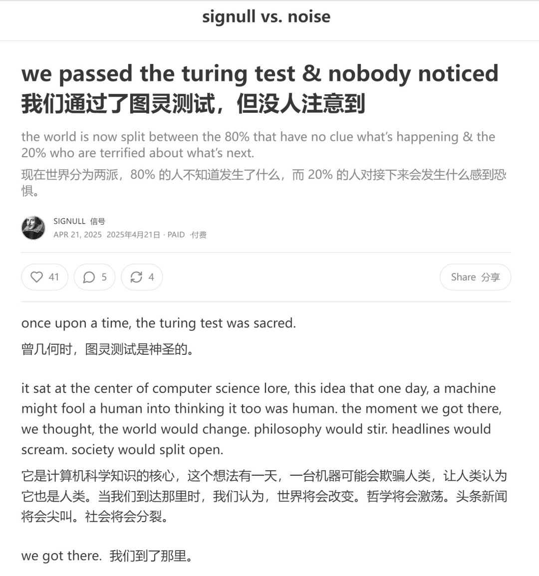 Jim Fan 提到的博客:https://signull.substack.com/p/we-passed-the-turing-test-and-nobody