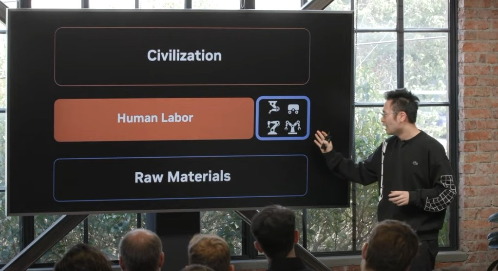 在这个物理 API 之上,将会有新的经济范式。我们会有新的物理提示技术(physical prompting)来给机器人下达指令,教它们学习新任务。语言有时候是不够的。