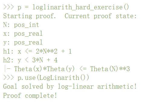 在「sympy」中,他能够构建各种(正)表达式「X」的数量级「Theta (X)」,其属性「 Theta (n)=Theta (1)」如下:如果「n」是标准数,然后使用这个概念来定义渐近估计,例如 (实现为 lesssim (X,Y))。接下来可以应用对数形式的线性算术来自动验证一些渐近估计。这里有个简单的例子:给定一个正整数 N 和正实数 x,y,使得