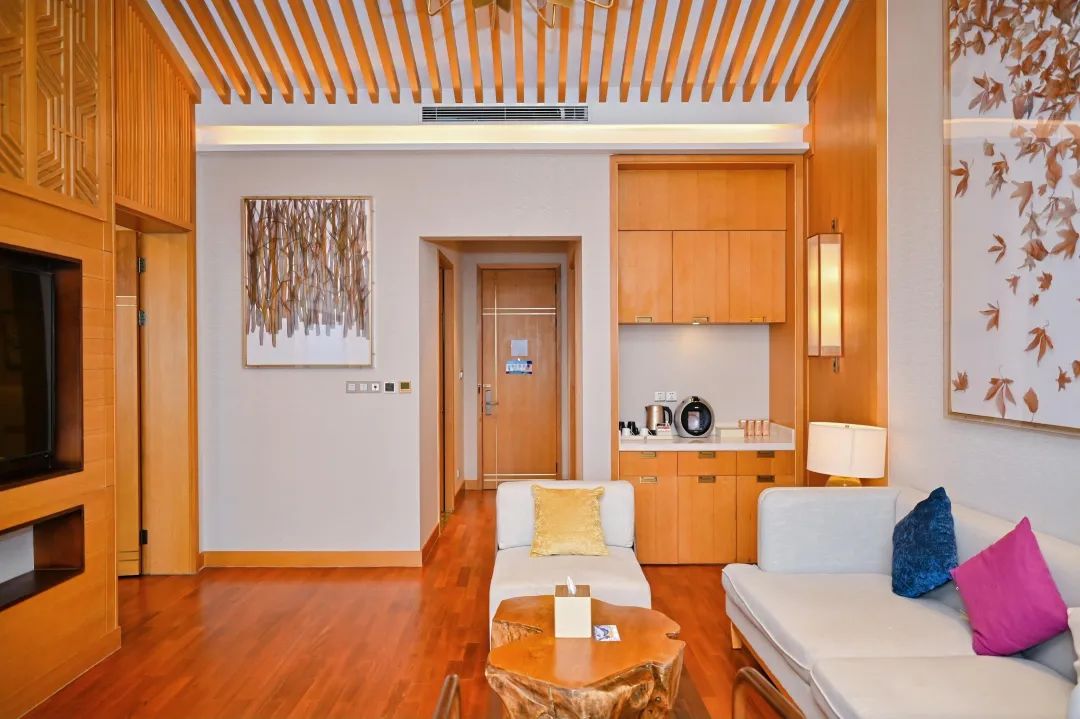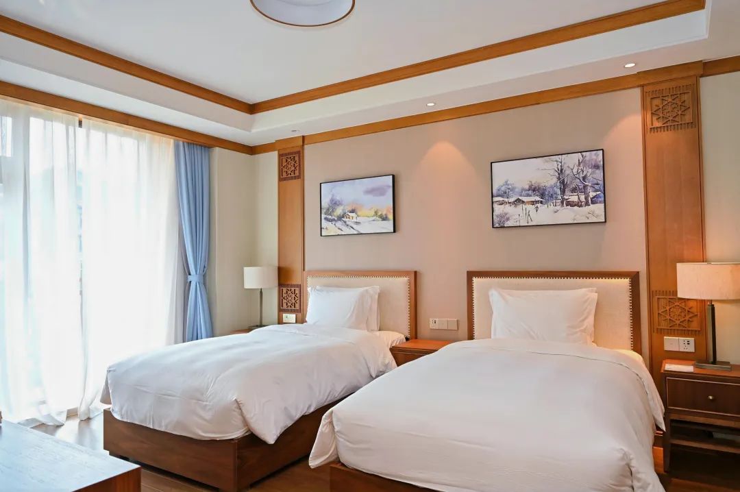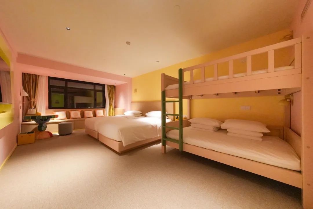 酒店是2024年开业的,相较于其他酒店会比较新,是以 “春、夏、秋、冬” 四季为主题脉络,并融入了当地的山地、森林和动物图案元素。