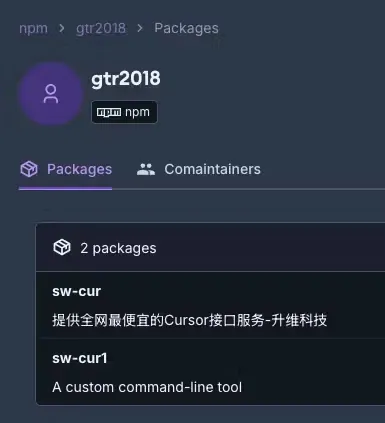 其中,“aiide-cur ”于今年 2 月 14 日首次发布,是由一个名为“aiide”的用户上传的,其 npm 库被描述为“用于配置 macOS 版本的光标编辑器的命令行工具”。另外两个软件包则是由一名化名为 “gtr2018” 的恶意行为者提前一天发布的。
