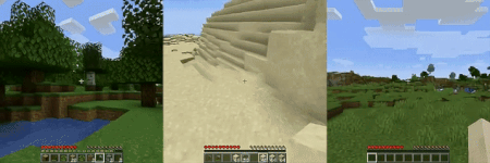 比如在下面这个「前进 + 攻击」的场景中,游戏人物穿过一片树林来到池塘前,代表树木的方块在受到攻击后被破坏,这是模型生成的环境反馈信号。而且,虽然池塘和后面的山体大部分被树木遮挡,但模型依然生成了合理的结果,使得整个过程的景物变化非常丝滑。