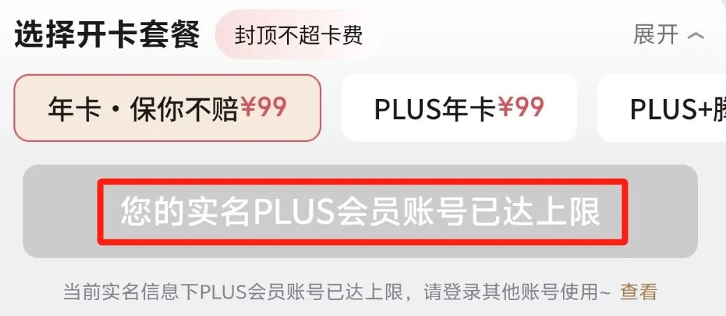 说正题。经常在京东购物的小伙伴应该知道,京东Plus会员的开通有限制,一个实名用户只能开通一个Plus会员。如果你已经是Plus会员,尝试用小号再去开一个,则会出现以下提示:
