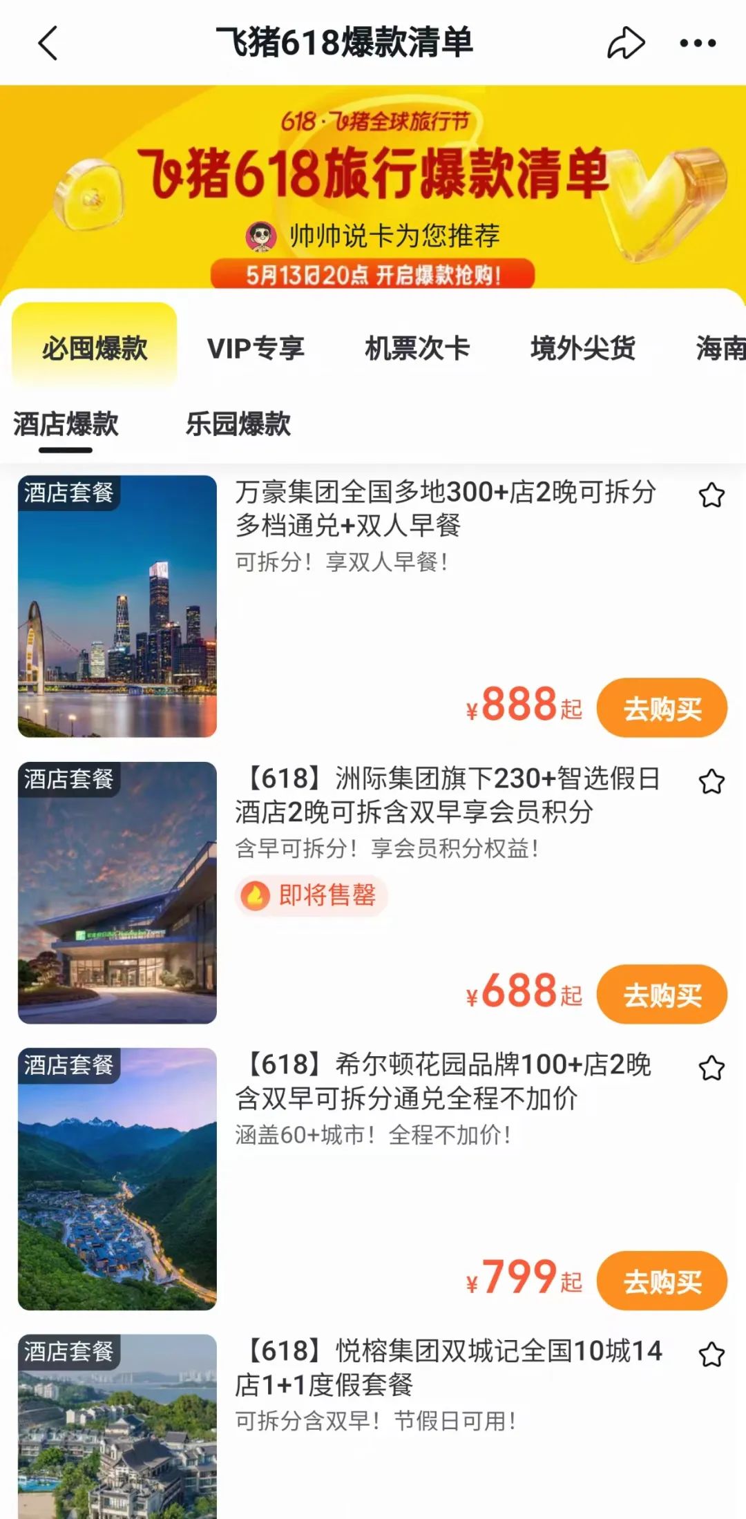 飞猪618今日也已开启,爆品集结,帅帅上午已经发文,有出游计划的小伙伴必看: